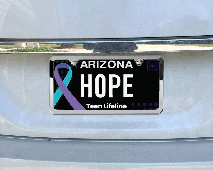 You can support Arizona teen mental health and suicide prevention by sporting the “Teen Suicide Prevention Awareness Specialty License Plate” on your vehicle! For every Teen Lifeline plate purchased ($25), $17 will be given to Teen Lifeline to continue our life-saving suicide prevention work.