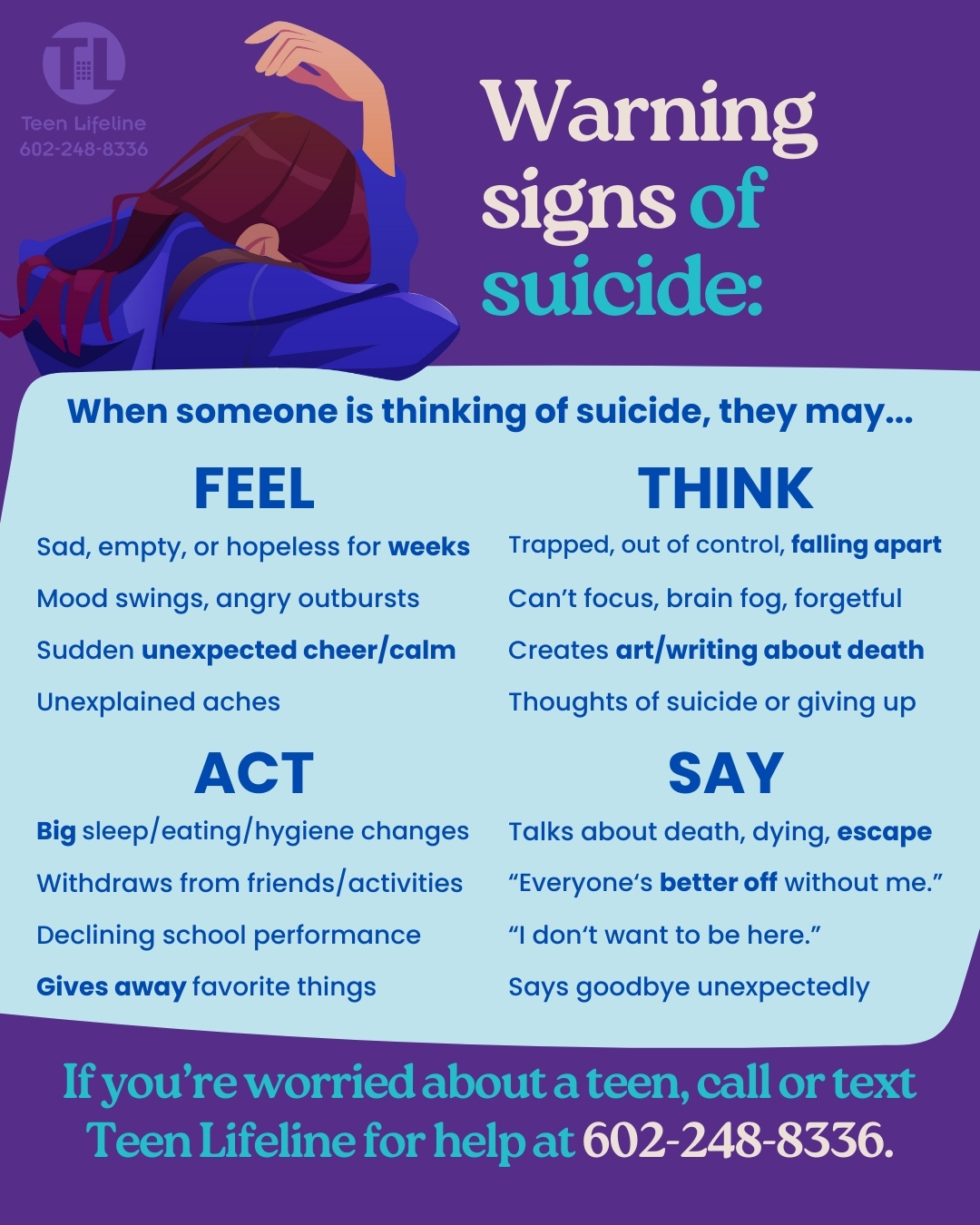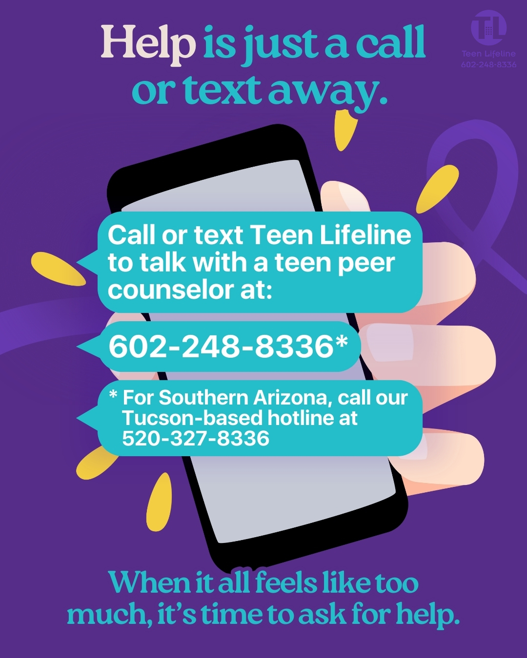 > Call/text Teen Lifeline at 602-248-8336 for youth-focused resources