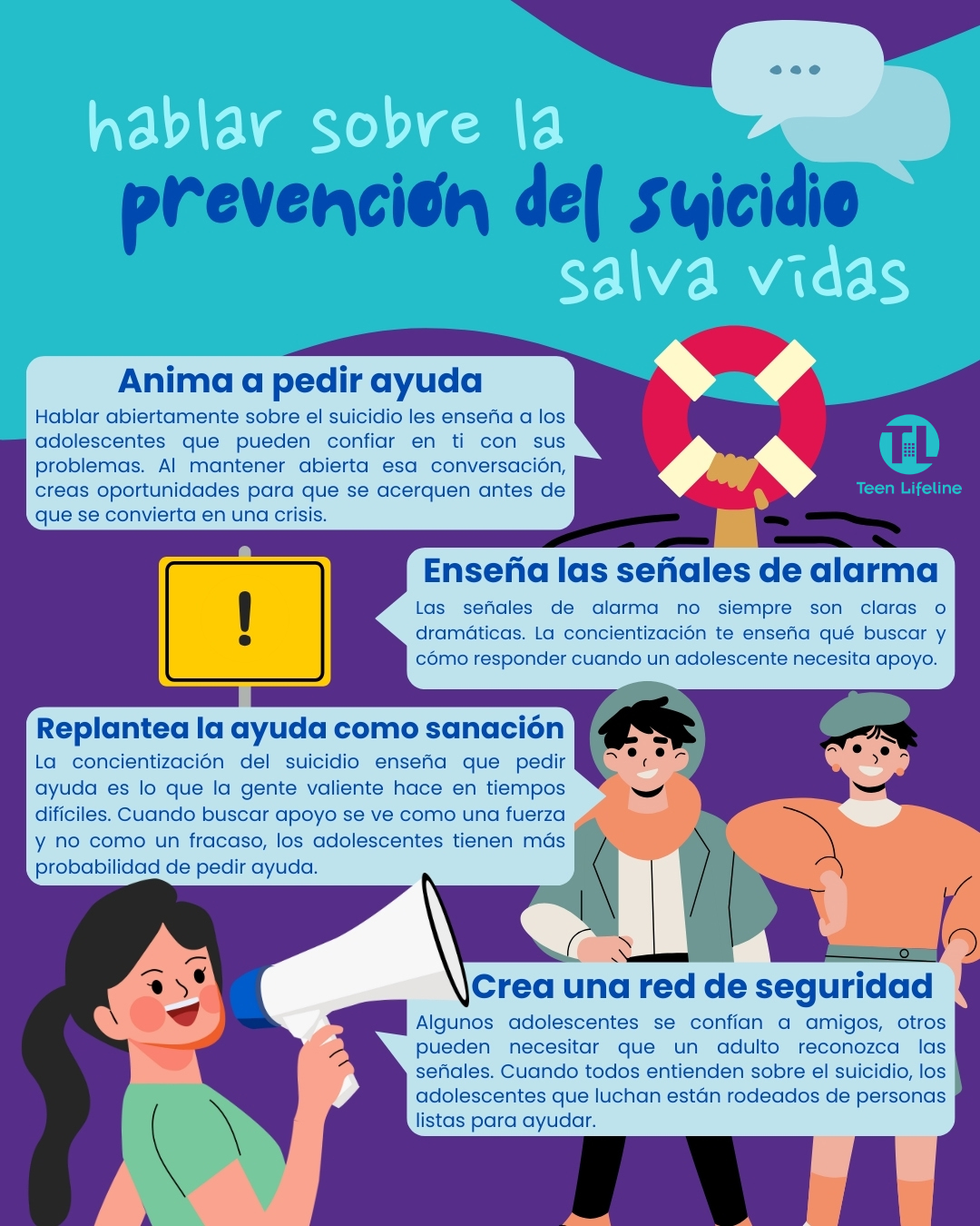 Talking about mental health problems and life challenges can literally save lives. Crisis hotlines like Teen Lifeline are here to help you and your loved ones through any crisis. You’re not alone!