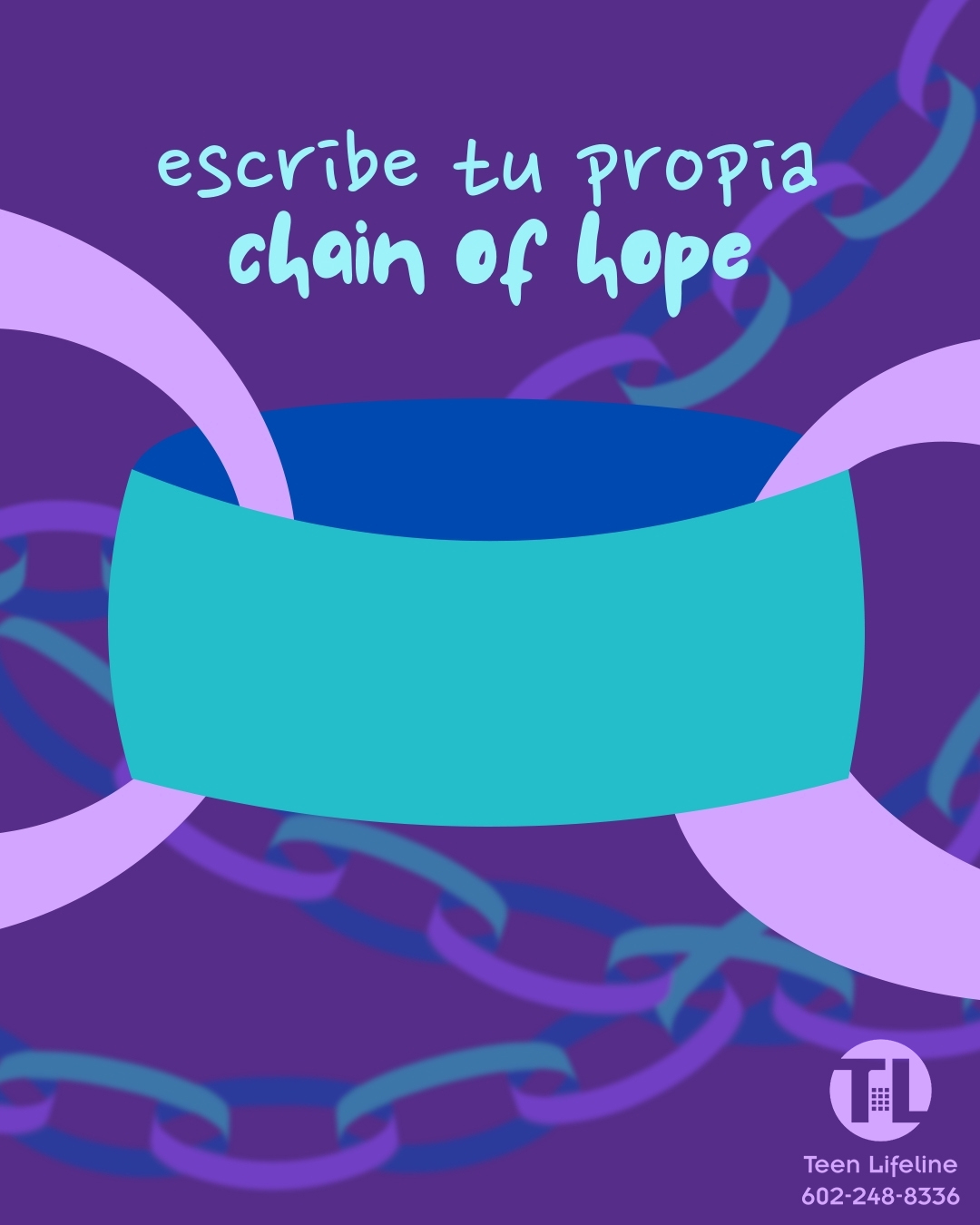 Create your own link in our chain of hope! Download this image, write your own words of encouragement, support, or affirmation in the blank link, and share to help spread awareness and support during September. Make sure to tag Teen Lifeline!